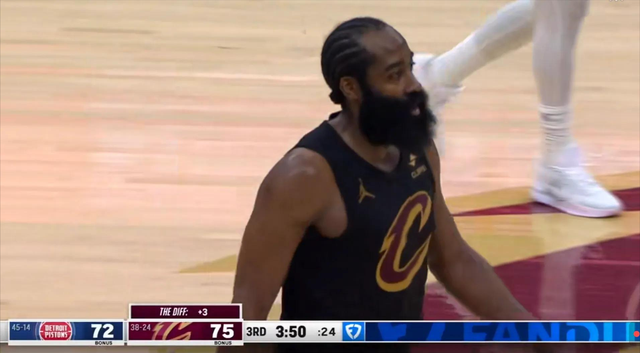 但骑士有足够的时间和容错率让哈登带伤打下去,直到完全康复。至少在今天带伤的哈登和活塞的康宁汉姆属于对对碰了。两队都在抓对手的核心,骑士严防死守CC,活塞对哈登也是各种协防夹击干扰,以防哈登出球。尽管哈登有伤,可活塞防守没有松懈。实际上开局哈登就给活塞上了一课。首节上来活塞防守没有针对,哈登就连砍7分帮助骑士领先7分。